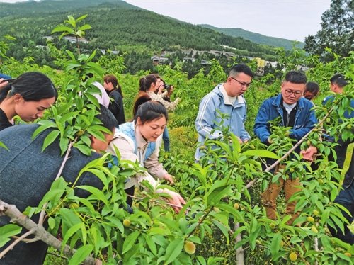 活动期间,广元市分公司青年党员完成了10余亩黄桃树的疏果工作;通过“以购代扶”的方式,现场认购脱贫户的肉制品,帮助脱贫户销售土特产品800余元,在农忙时节缓解了断桥村劳动力不足、农产品销售难等问题。近年来,广元市分公司累计投入5万余元帮助断桥村建成40余亩黄桃产业园,年产值超30万元。