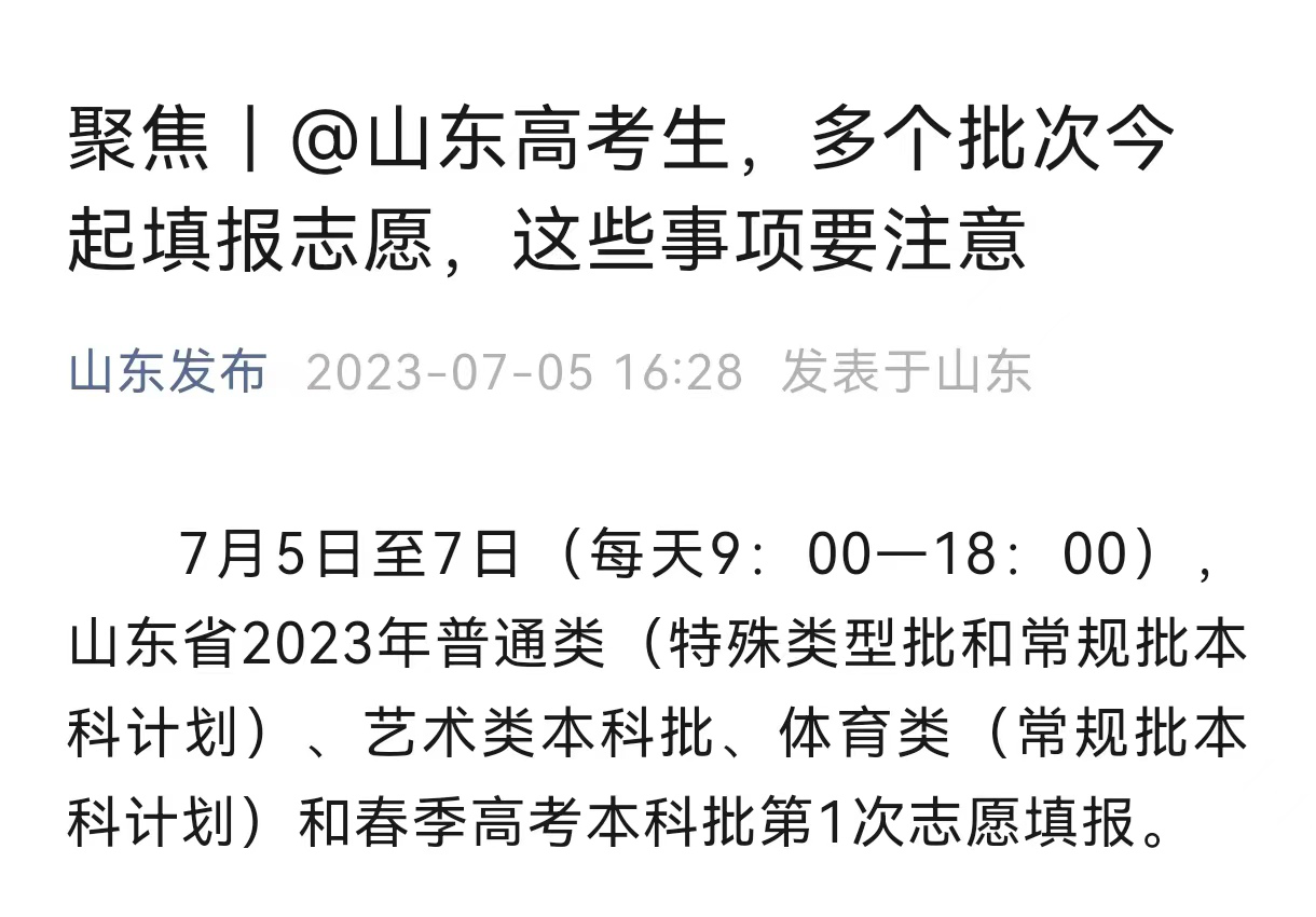 7月5日,山东发布@高考生
