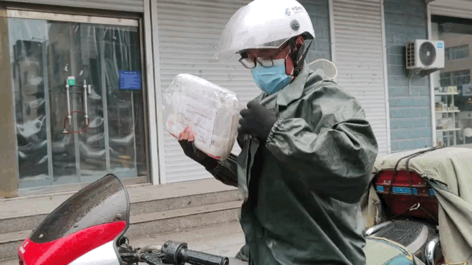 冒着雨赶往收件地址