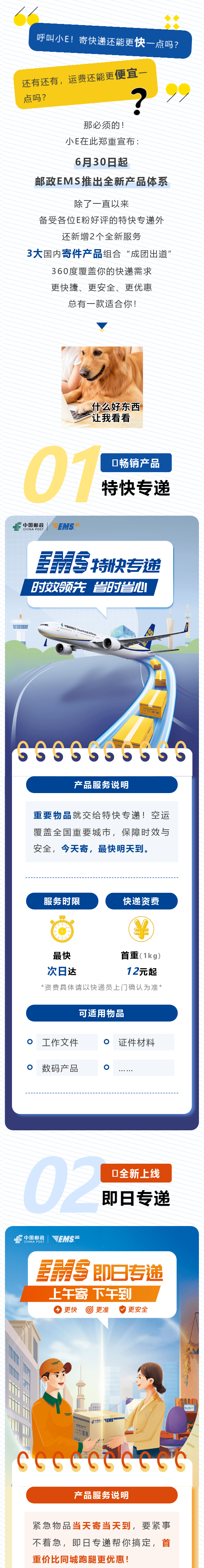 既懂快递也懂你!中国邮政EMS全新产品体系上线!