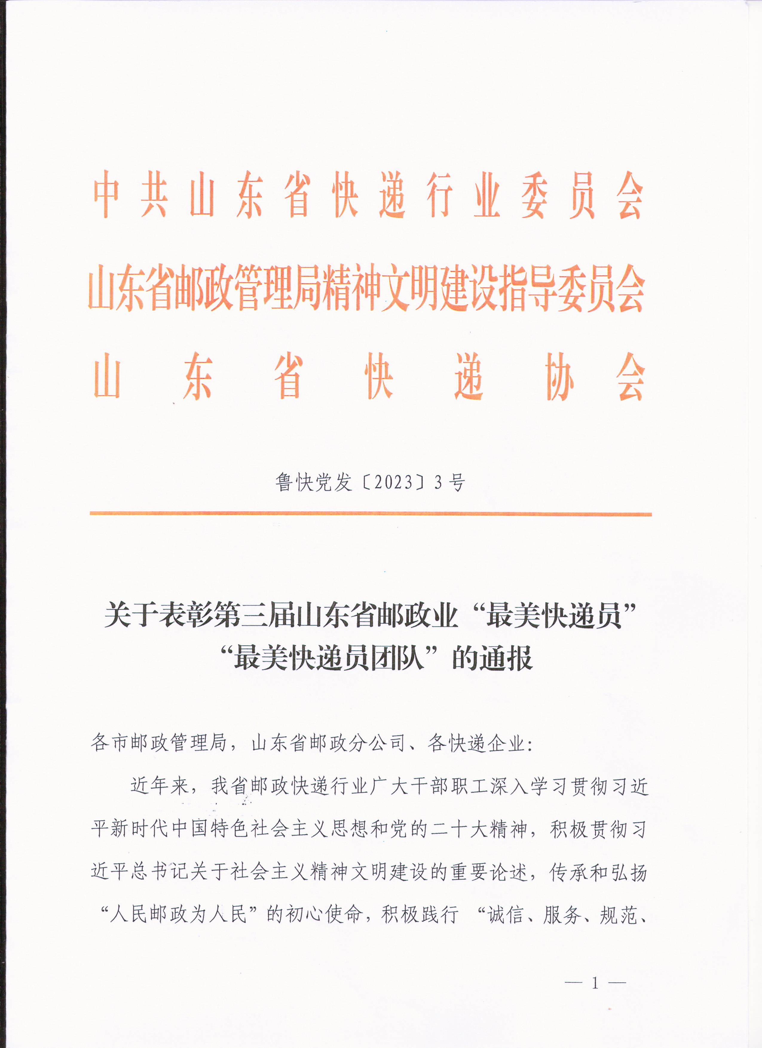 山东邮政9名员工1个团队获评第三届山东省邮政业“最美快递员”“最美快递员团队”