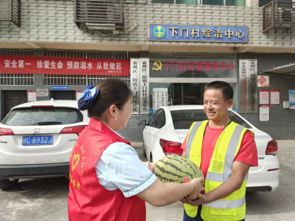 9月5日,袁州区分公司三阳邮政所开展“为环卫工人送清凉”活动。全体工作人员将西瓜和矿泉水装车分别送往10个村的环卫处,送到环卫工人的手中,对他们的辛勤付出表示感谢。