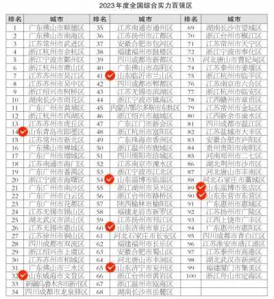 全国百强县市区系列榜单发布!山东这些地方上榜