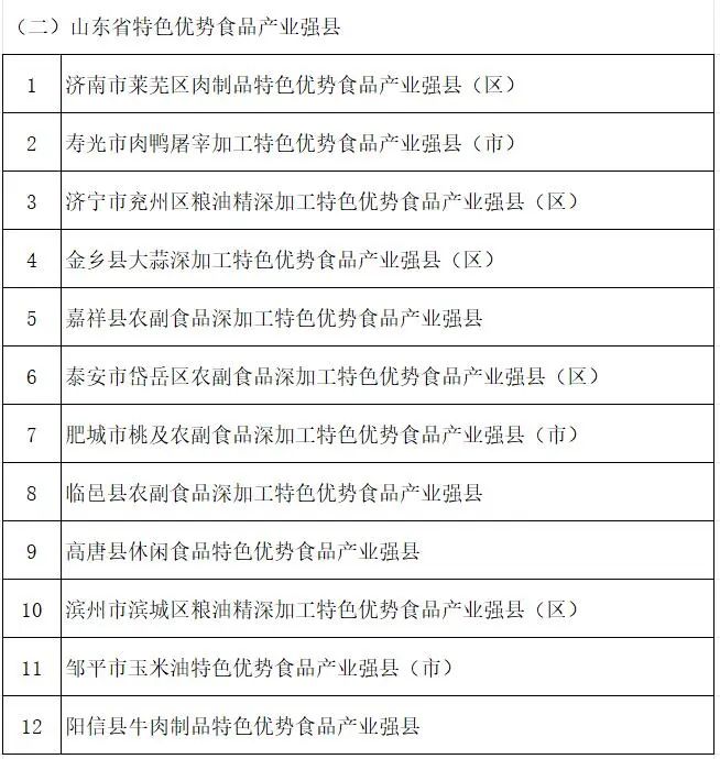 2023年度山东省特色优势食品产业聚集区名单出炉