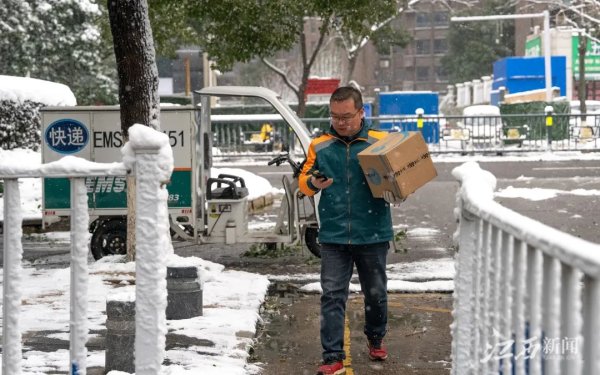 “喂,您好,您的快递到了,我现在给您送上去。”钟琪一手拿着快件,一手用智能终端设备与客户联系。钟琪笑着告诉记者:“今天大概送了120余件快递,虽然下雪天路比较滑,对快件的揽投有一定影响,但我们还是会尽全力,确保安全、准时地把邮件交到客户手中。”