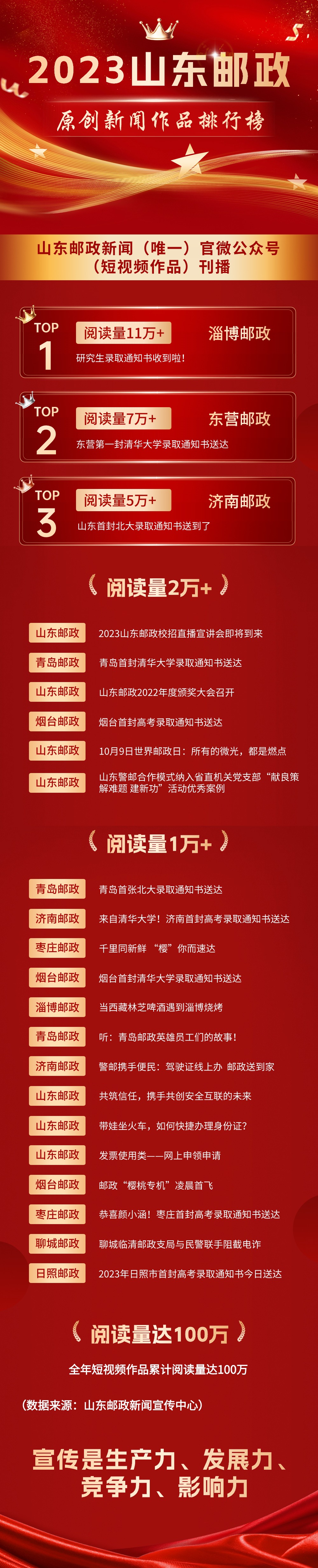 2023年度市分公司重点新闻宣传排行榜