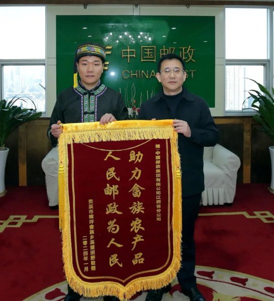 “我们特意过来表示感谢,虽然说一面锦旗不能代表什么,但也是我们的一份心意。”1月24日,贵溪市樟坪畲族乡派代表穿着民族服饰,冒着严寒专程前往省分公司,送上“ 助力畲族农产品  人民邮政为人民”锦旗, 感谢江西邮政在2024年民族特色农产品年货节活动中,为他们销售了香菇等农产品25.6万元,避免了因严寒天气造成的经济损失。