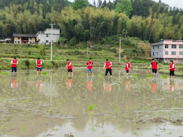 志愿者们脱下鞋子、挽起裤脚,扎进稻田中。大家目标一致、分工合作,女同志负责搬运、转移秧苗,男同志负责抛秧……不一会儿,绿油油的秧苗便铺满了整片稻田,勾勒出一幅生机勃勃的春日画卷。“早稻种植是我们村当前的主线任务,你们过来帮忙,真是解决了我们的燃眉之急,谢谢你们!”上柏村村支书熊华銮如是说。