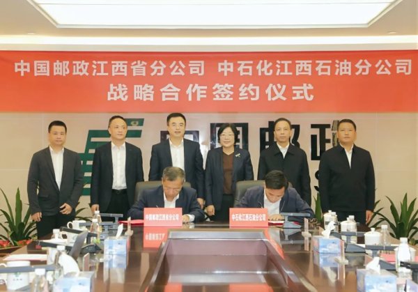 10月31日,中国邮政集团有限公司江西省分公司、中国石化销售股份有限公司江西石油分公司(以下简称“中石化江西石油分公司”)在南昌签订战略合作协议。 中石化江西石油分公司代表、党委书记仲伟,总经理、党委副书记施尚强;省分公司党委书记、总经理王彦超,党委委员、副总经理徐德强出席活动。中石化江西石油分公司党委委员、副总经理曹志宏,省分公司党委委员、副总经理许悦林代表双方共同签署战略合作协议。