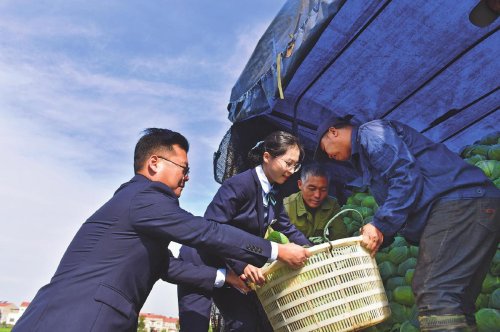秋收时节,湖北省嘉鱼县潘家湾镇十里蔬菜长廊中,绿油油的包菜一望无际,村民们正忙着砍菜、摘叶、背菜、装车。邮储银行嘉鱼县支行客户经理在对村民进行贷后回访的同时,帮助村民摘叶、装车。