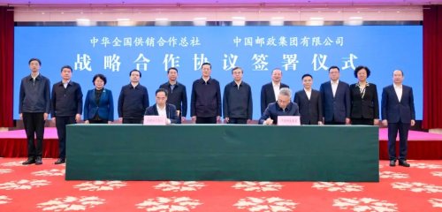 11月15日,中国邮政集团有限公司与中华全国供销合作总社(以下简称供销合作社)在京签署战略合作协议,供销合作社党组书记、理事会副主任韩立平与中国邮政集团党组书记、董事长刘爱力,党组副书记、总经理郑国雨举行工作会谈并见证签约。供销合作社理事会副主任张梅林与中国邮政集团副总经理曲云海分别代表双方签署协议。双方相关部门负责同志出席。