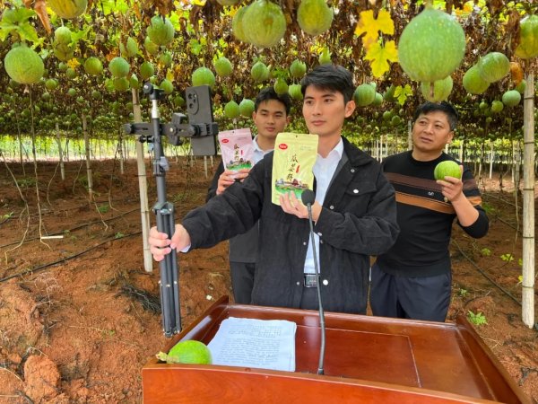 “这是陈园村当地药食同源的瓜蒌,果皮、根部可入药,果实营养丰富……”11月10日,临川区分公司联合龙溪镇陈园村党支部在瓜蒌籽种植基地开展“红色村播 直播带货”活动,用实际行动践行邮政助农惠农、助力乡村振兴的责任担当。主播们以饱满的热情向观众详细介绍了瓜蒌子的生长习性、药用价值等,直播间吸引了一大批网友点赞、购买。随后,大家齐聚瓜蒌架下,与村民一道,互相协作完成了50余袋瓜蒌的采摘、打包、装袋、上车工序。