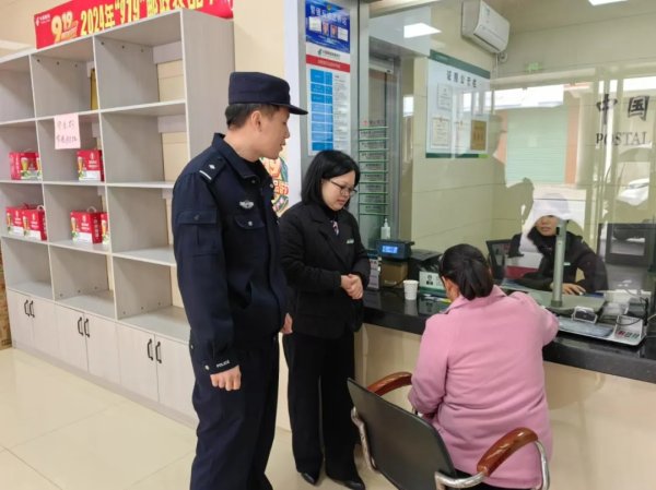 在了解详细情况后,大家立即意识到张某可能遭遇了电信诈骗。营业主管一边联系反诈驻点民警,一边耐心地向张某解释。经过网点工作人员和驻点民警的耐心劝导,张某的眼神从最初的焦急、迷茫到恍然大悟,他对邮政工作人员和民警的及时劝阻非常感激,并表示将以自己的亲身经历告诫他人,提高警惕,守护好自己的钱袋子。