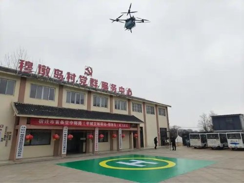 “嗡嗡嗡……”2月21日,一架载有十余件快递的无人机平稳降落在江苏泗洪县半城镇穆墩岛村,岛上揽投员也将告别“一人一船,往返大半天”的传统配送方式。