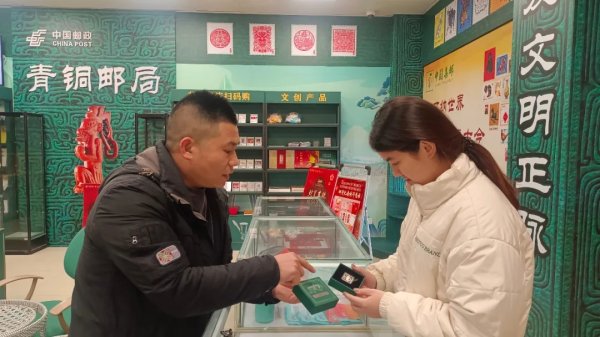 电影激发公众对青铜文化的热情,新干县分公司打造的青铜主题邮局成为网红打卡地,人流量同比翻番。 该分公司还组织人员积极转发江西卫视视频号,内容含“《哪吒2》中的这个武器居然来自江西”,同时在大厅设打卡合影框,提供盖戳服务,吸引观众参与互动,助力引流推广。主题邮局内,充满青铜元素的文创产品琳琅满目。以青铜伏鸟双尾虎、青铜四足铜甗等文物为原型设计的文创产品吸引着众多游客驻足观赏、挑选、盖戳。新干县分公司推出的青铜纹邮戳别具特色,伏鸟双尾虎等限量版文创更是将文物的艺术魅力与收藏价值完美融合。