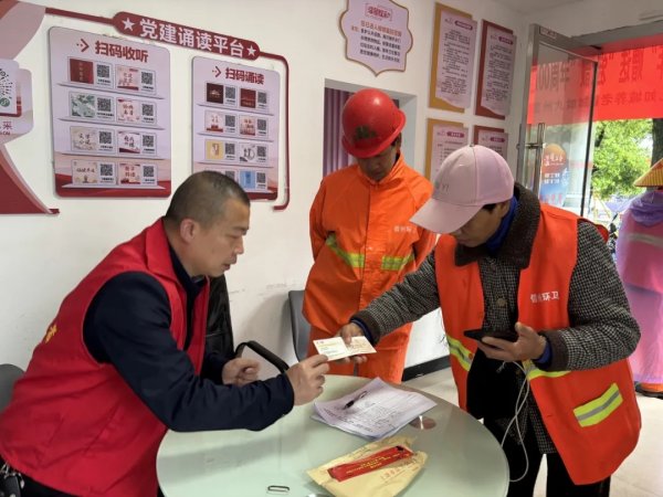 当天上午,虽然雨丝连绵,但也抵不住大家的热情,现场众多环卫工、快递员、外卖员等户外劳动者纷纷来到站点,领取免费“爱心午餐券”。本次活动采取"驿站领券+定点用餐"模式,爱心午餐设有三个用餐点,分别在紫阳、龙芽亭、庆丰路,每张餐券可以免费兑换一份包含二荤二素一汤的套餐。据悉,本次“爱心午餐券”发放活动为期三天(4月23日-25日),每天提供100份餐券。