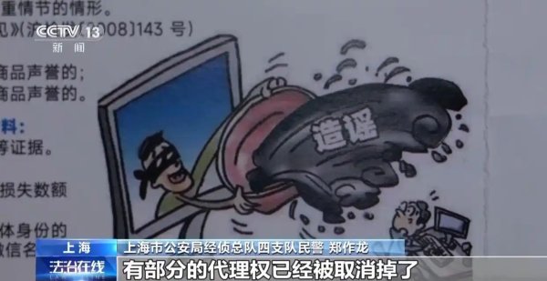 上海市公安局经侦总队四支队民警 郑作龙:他们去购买了一个假的报告,说这个产品两个指标有问题,本身报告与鉴定的结论就是捏造出来的,另外通过撰写文章,文章里面配文说如果有问题会产生多么严重的后果。然后又找自媒体去散布,最后造成了报案方公司直播取消,产品下架等,造成了数千万元的重大损失。