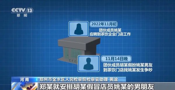 郑州市金水区人民检察院检察官助理 黄淦:在2022年11月14日的晚上,郑某就安排胡某假冒店员姚某的男朋友到店内与姚某发生冲突,双方发生了非常激烈的争吵,随后胡某以泄愤的方式在店内的配料盒中小便,然后姚某又故意使用这些配料盒中的配料,制作饮料,卖与客人。