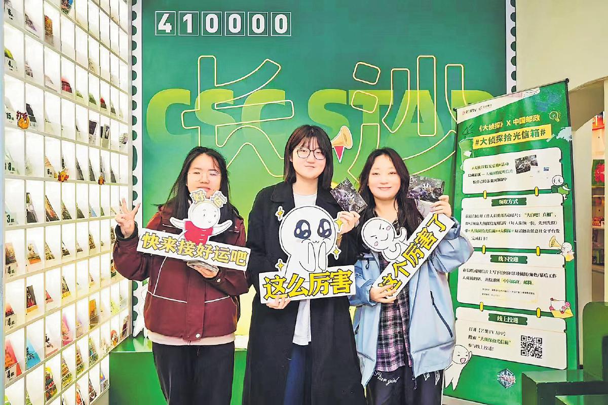 为吸引年轻消费群体,长沙市分公司还积极拓展对外合作版图,通过主题邮局与多元IP展开深度联动,不断为传统邮政业务注入新活力。近日,长沙市分公司与芒果TV热门综艺《大侦探》深入合作,在岳麓山主题邮局开展了“大侦探拾光信箱”打卡活动,以“书信+推理”的破次元玩法,瞬间点燃粉丝热情。活动成功展示了邮资封片产品在传递信息、纪念收藏、情感交流等方面的内核价值,还登上抖音热榜、微博热搜,极大地提升了邮政品牌的曝光度和影响力。参与活动的李女士感叹道:“这次活动让我看到了不一样的邮局,不仅文创产品精美,还有这么多与时俱进的玩法,处处充满惊喜!”