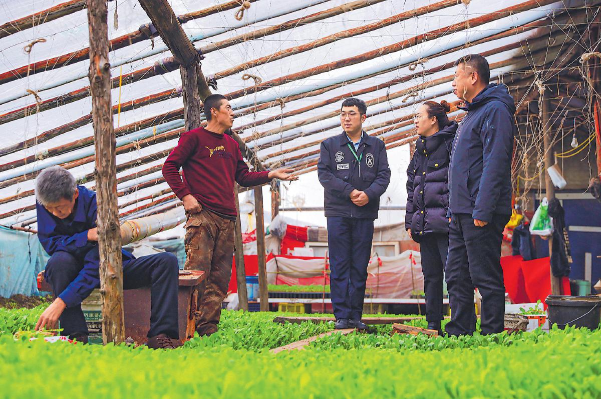 漠河市支行工作人员走访大棚早春蔬菜种植客户,宣传贷款业务。