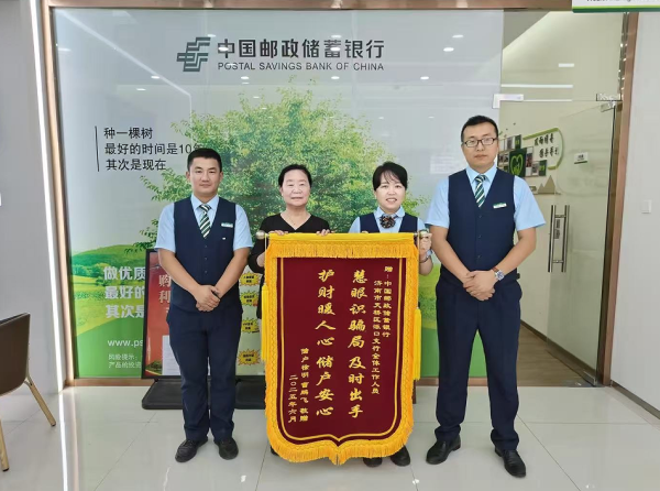 7月初,心怀感激的老人专程来到洛口邮政支局,将一面印有“慧眼识骗局,及时出手;护财暖人心,储户安心”的锦旗和一封情真意切的亲笔感谢信,郑重交到姚化英、张永明手中。老人激动地表示:“多亏了你们认真负责、火眼金睛,保住了我的养老钱!”