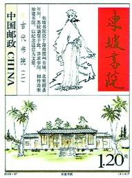 2009年11月15日,我国发行了2009-27T《中国古代书院(二)》邮票一套4枚,第四枚“东坡书院”(图⑤),图案为海南儋州的“东坡书院”,以国画的形式,呈现出古色古香、儒雅秀美的大气格调。票面上苏东坡的神态以白描手法跃然纸上,非常传神。