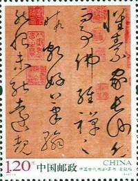 2011年4月15日,中国邮政发行了2011-6T《中国古代书法——草书》特种邮票一套4枚,同时发行小版张1枚。第一枚为“自叙帖”,是唐书法僧怀素草书,被誉为“中华第一草书”,也是中华十大传世名帖之一(图③)。